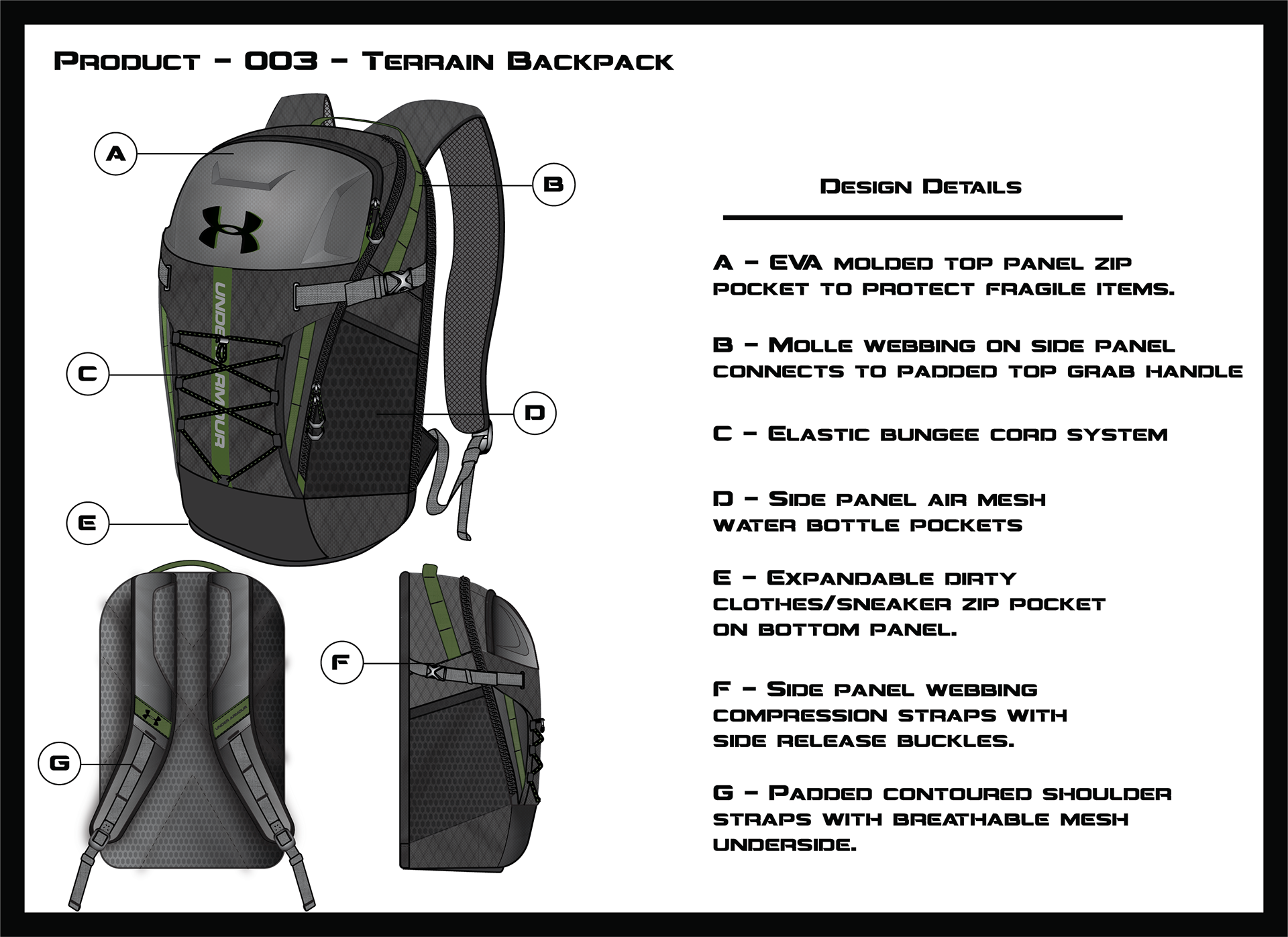 Previous concepts for backpacks, briefs, & luggage.